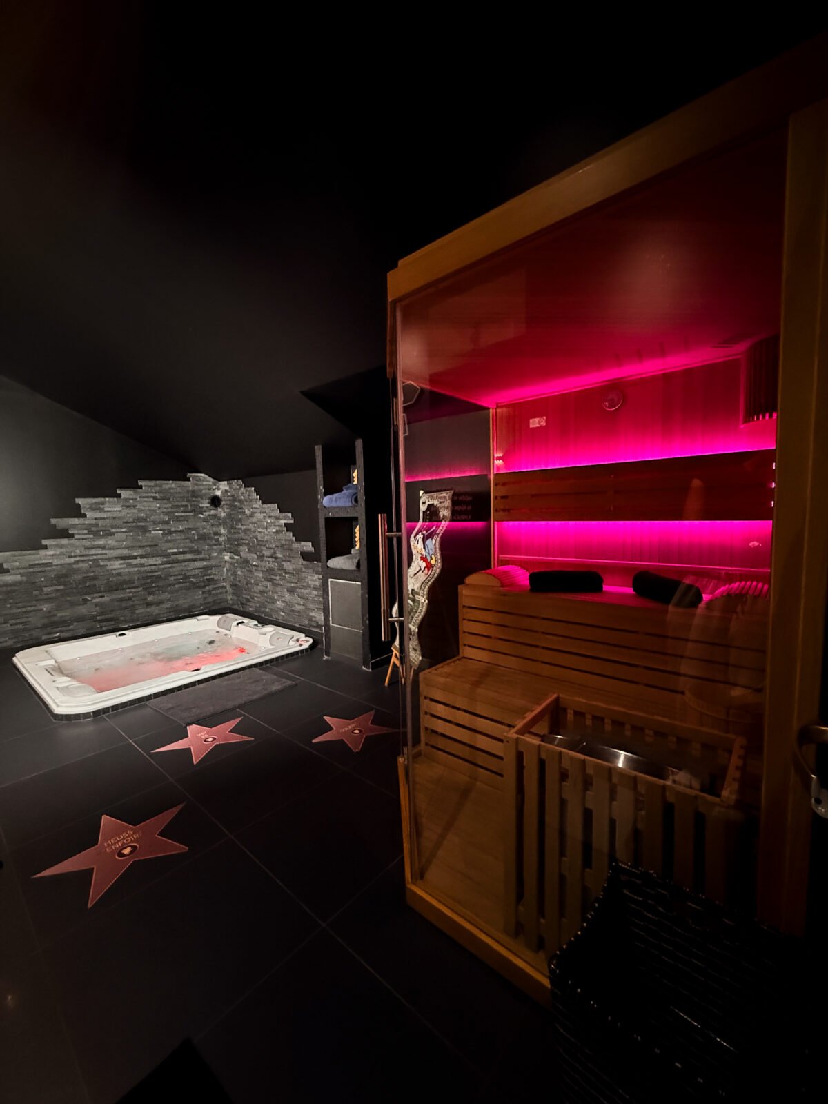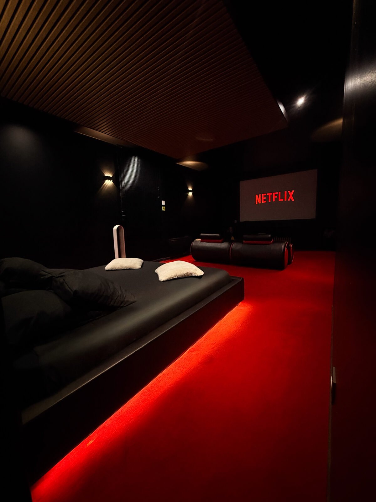 Profitez d’un écran de cinéma grand format et de deux sièges réglables pour visionner vos films préférés comme dans une véritable salle privée. Après le spectacle, détendez-vous dans le jacuzzi et le sauna pour un moment de relaxation ultime. Idéale pour une escapade romantique ou une soirée cinéma hors du commun, la suite Cinéma vous promet une immersion totale.