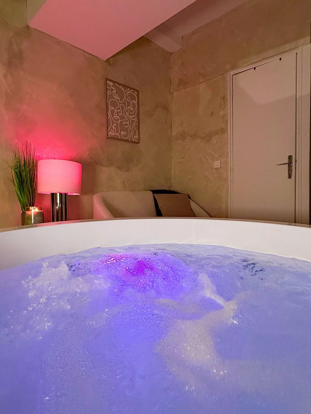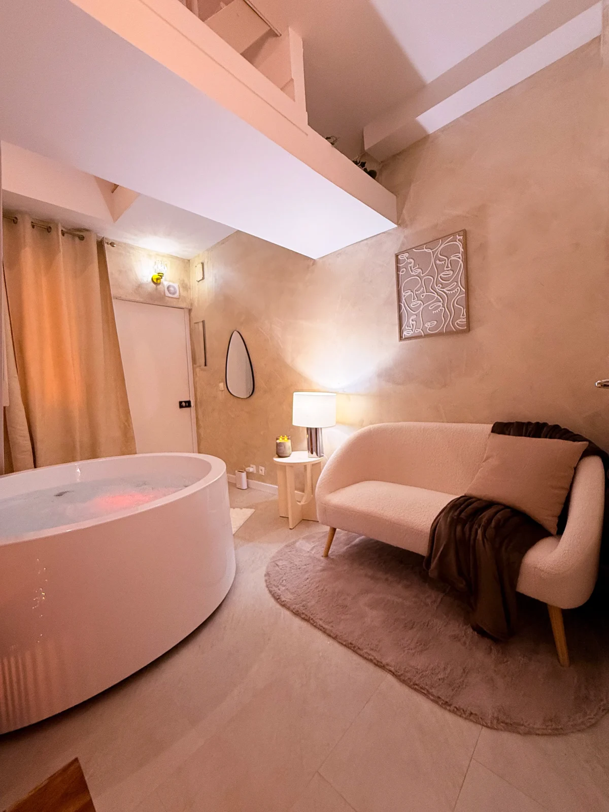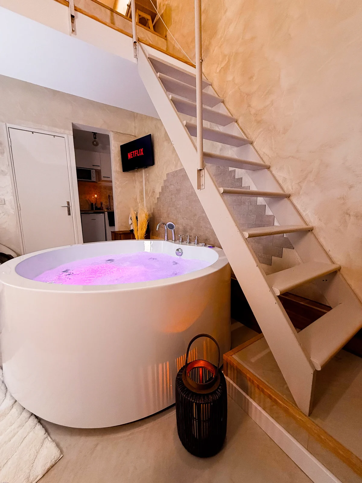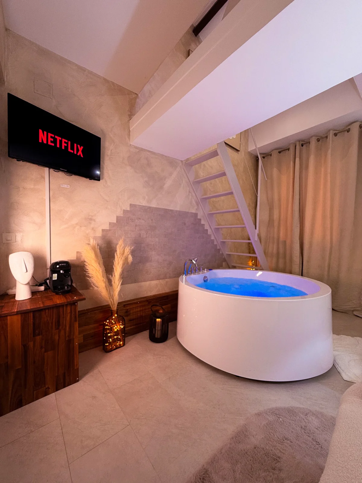Au rez-de-chaussée, profitez d’un jacuzzi privatif dans un espace lumineux à la décoration soignée, parfait pour vous détendre après une journée bien remplie.