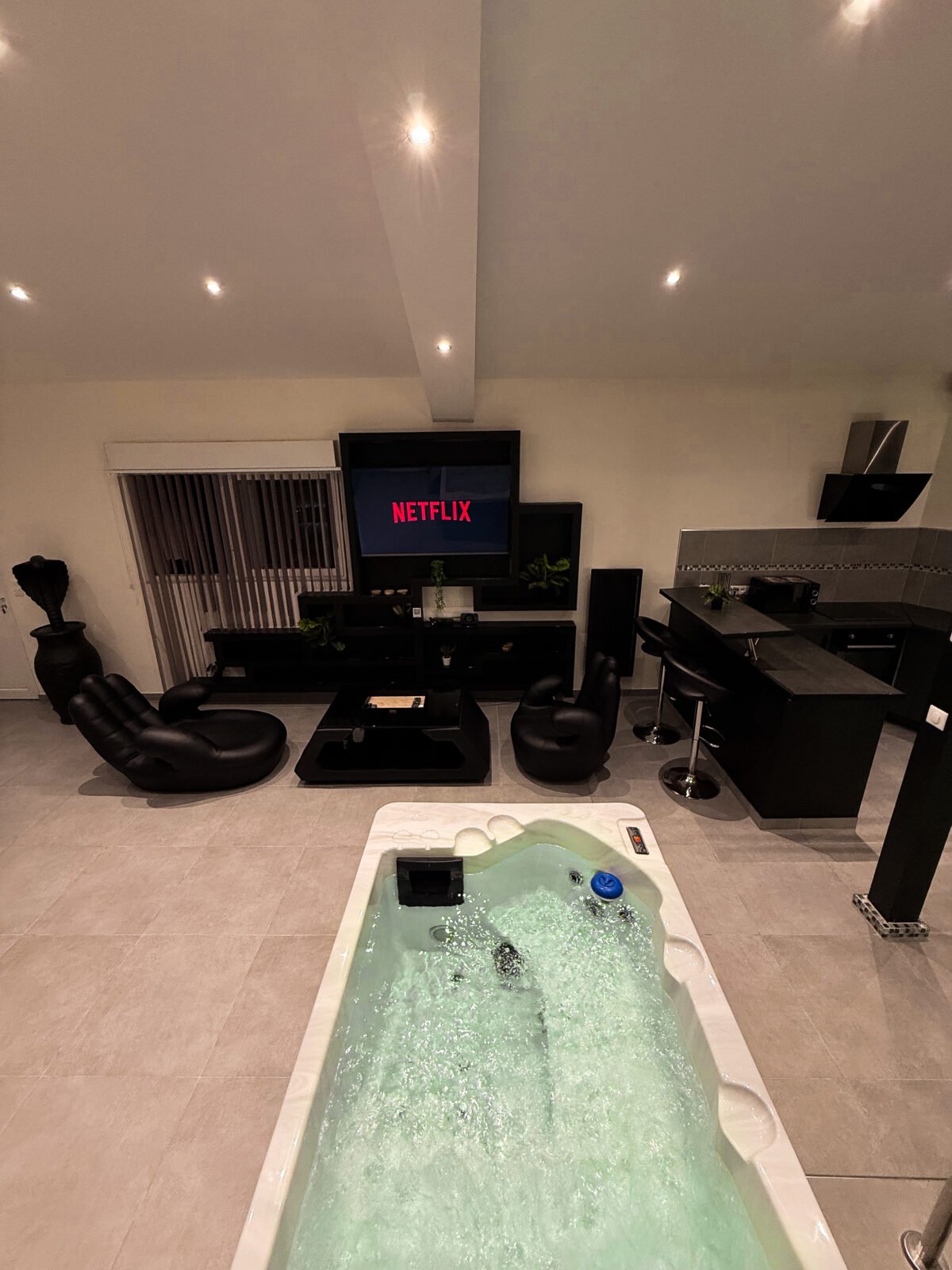 Très bon séjour à profiter a la fois du spa ainsi que de l’écran géant !