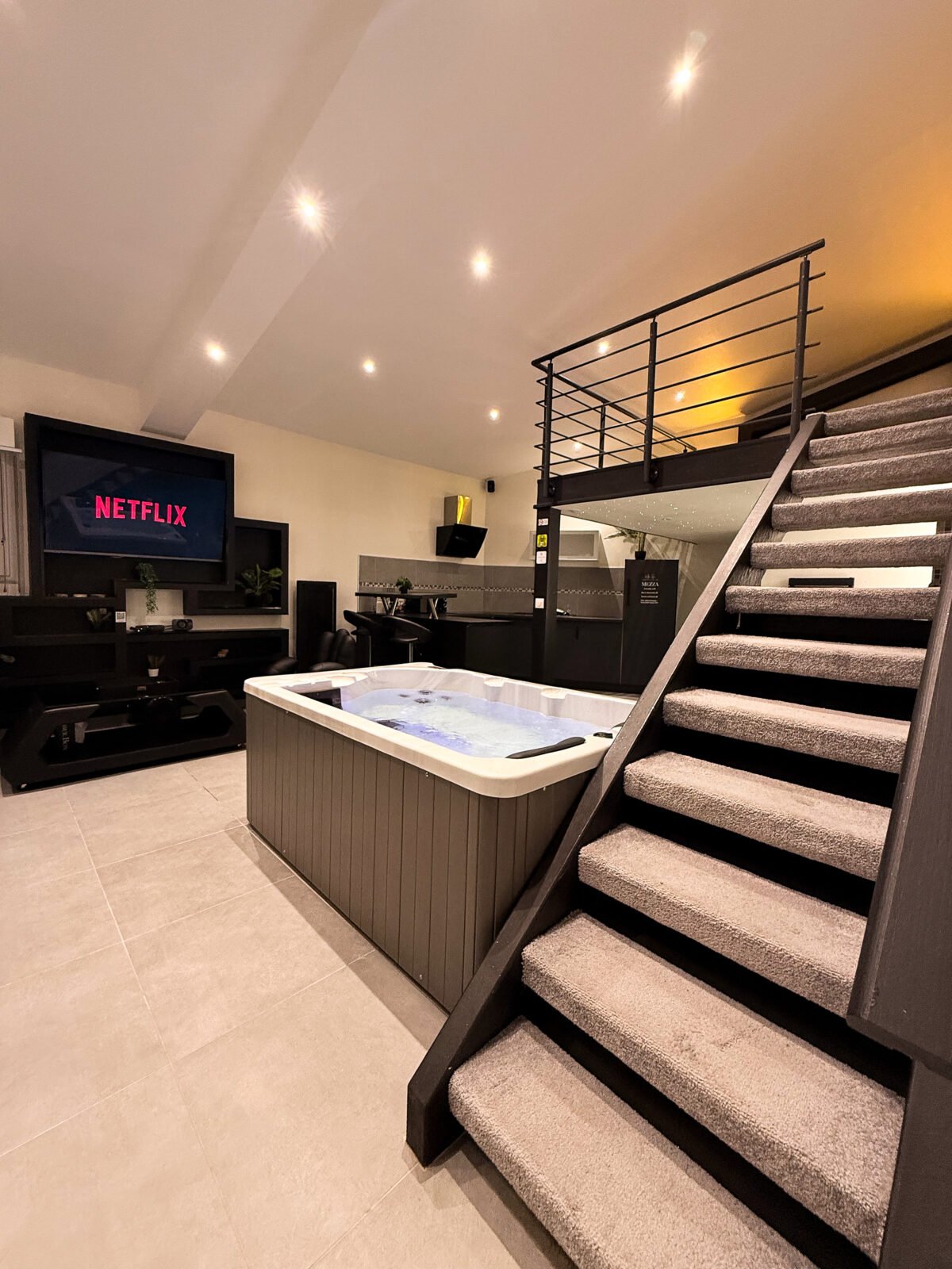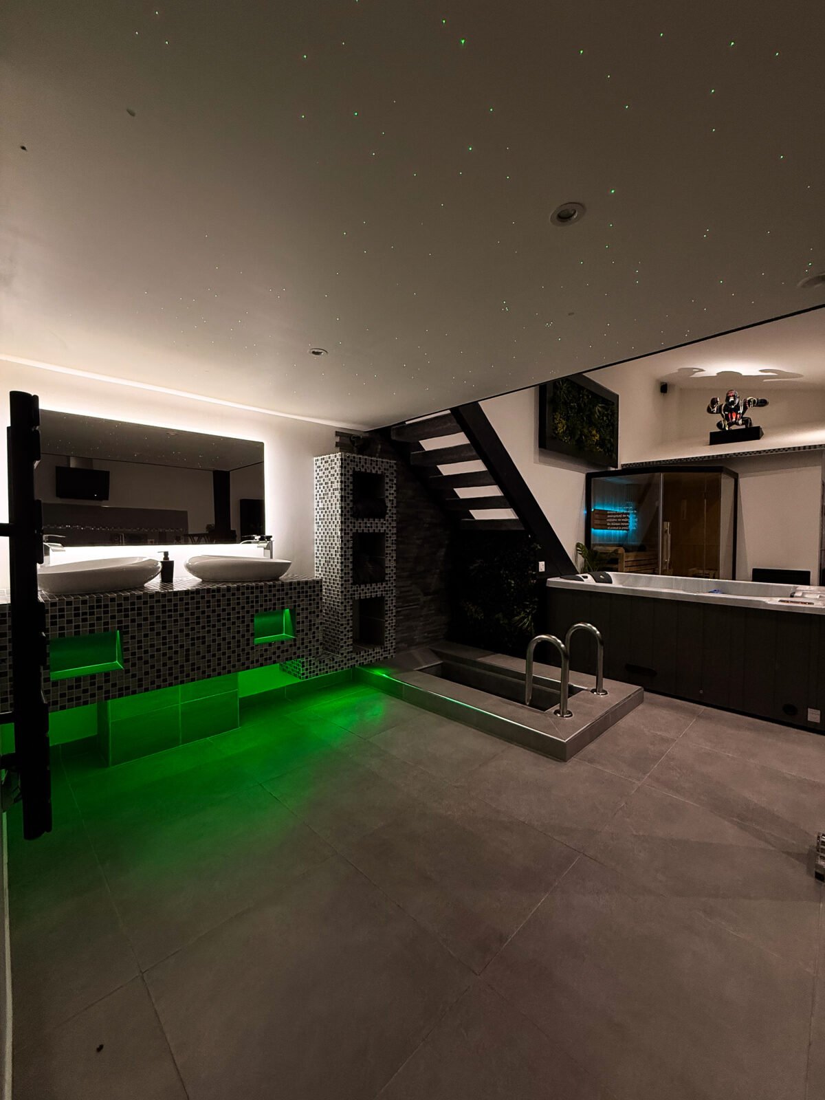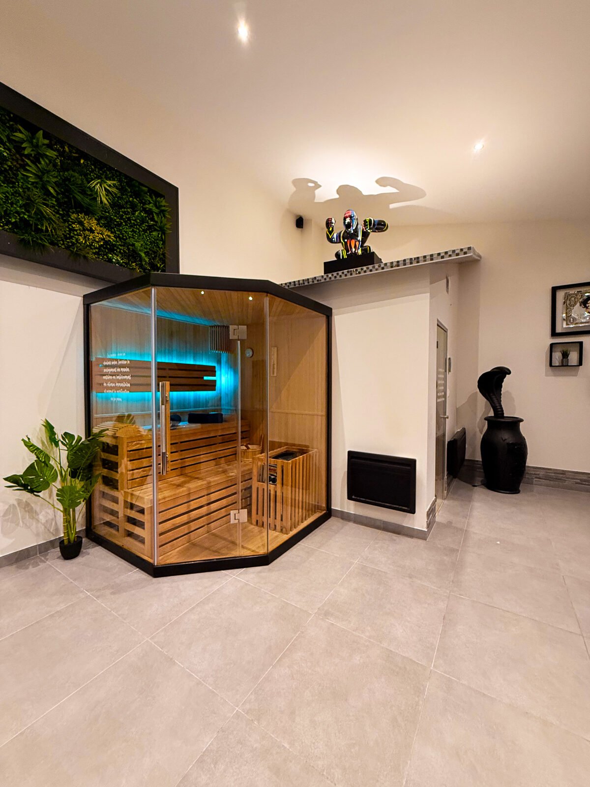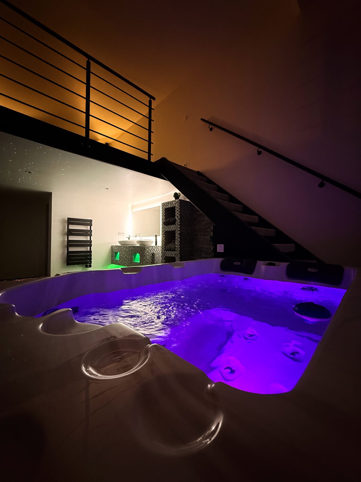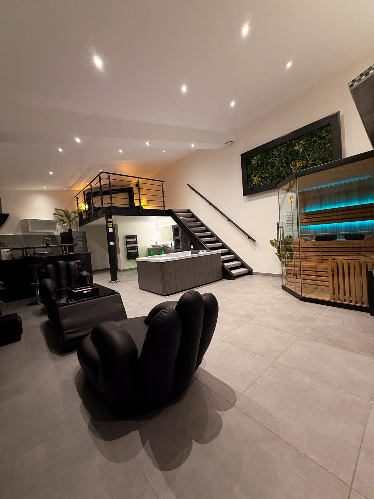 ✨ À seulement 35 à 40 minutes en voiture de Paris, cette suite vous ouvre les portes d’un véritable sanctuaire de détente, où le raffinement se marie à l’intimité absolue. Plongez dans une atmosphère élégante et apaisante, conçue pour une expérience sensorielle unique. Ici, chaque détail invite au lâcher-prise : un jacuzzi privatif, un sauna traditionnel, un hammam spacieux, et même un bain froid — idéal pour les plus téméraires en quête de récupération et de bien-être scandinave. L’espace se distingue par son design moderne et épuré, ses jeux de lumières tamisées et ses équipements haut de gamme. Profitez d’un lit king-size en mezzanine, d’un salon cinéma avec Netflix, et d’une cuisine entièrement équipée pour vos moments de complicité.