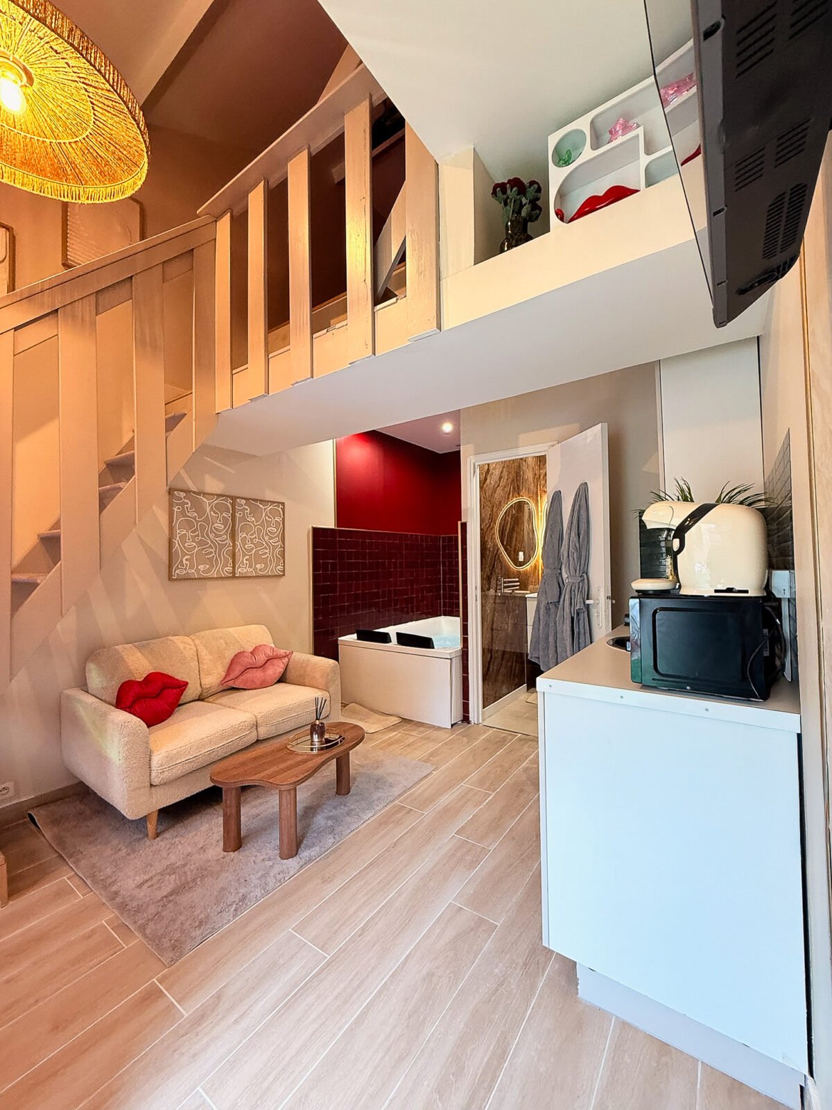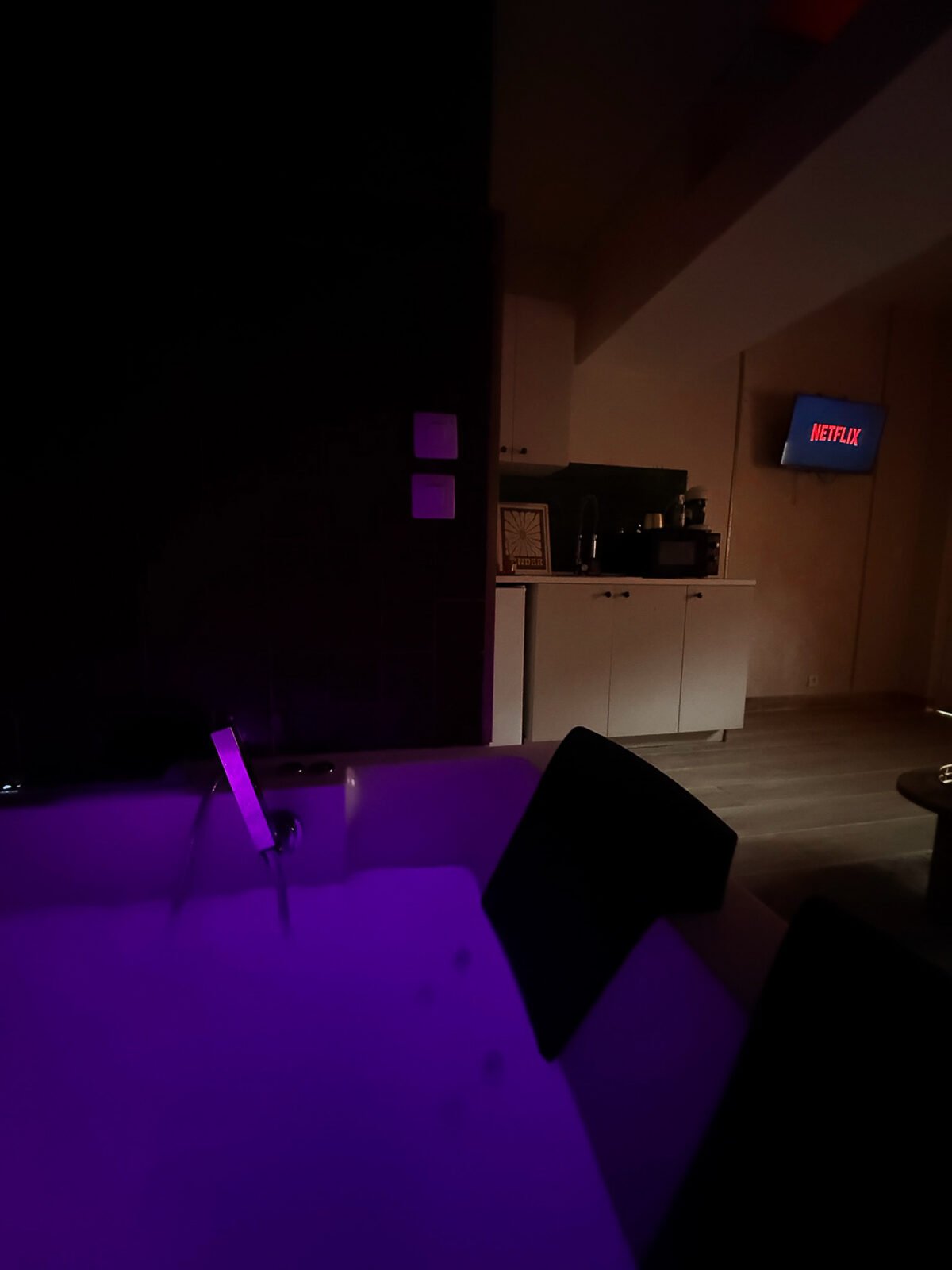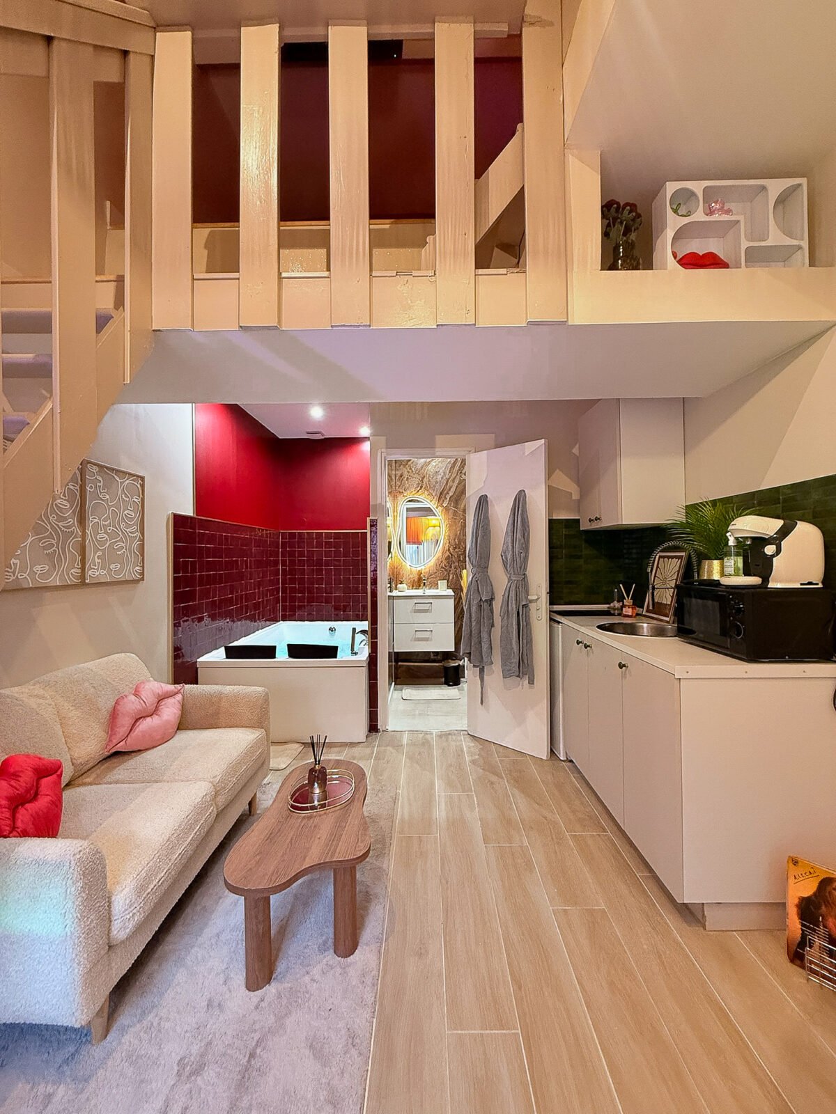 Au rez-de-chaussée, profitez d’un jacuzzi privatif dans un espace lumineux à la décoration soignée, parfait pour vous détendre après une journée bien remplie.