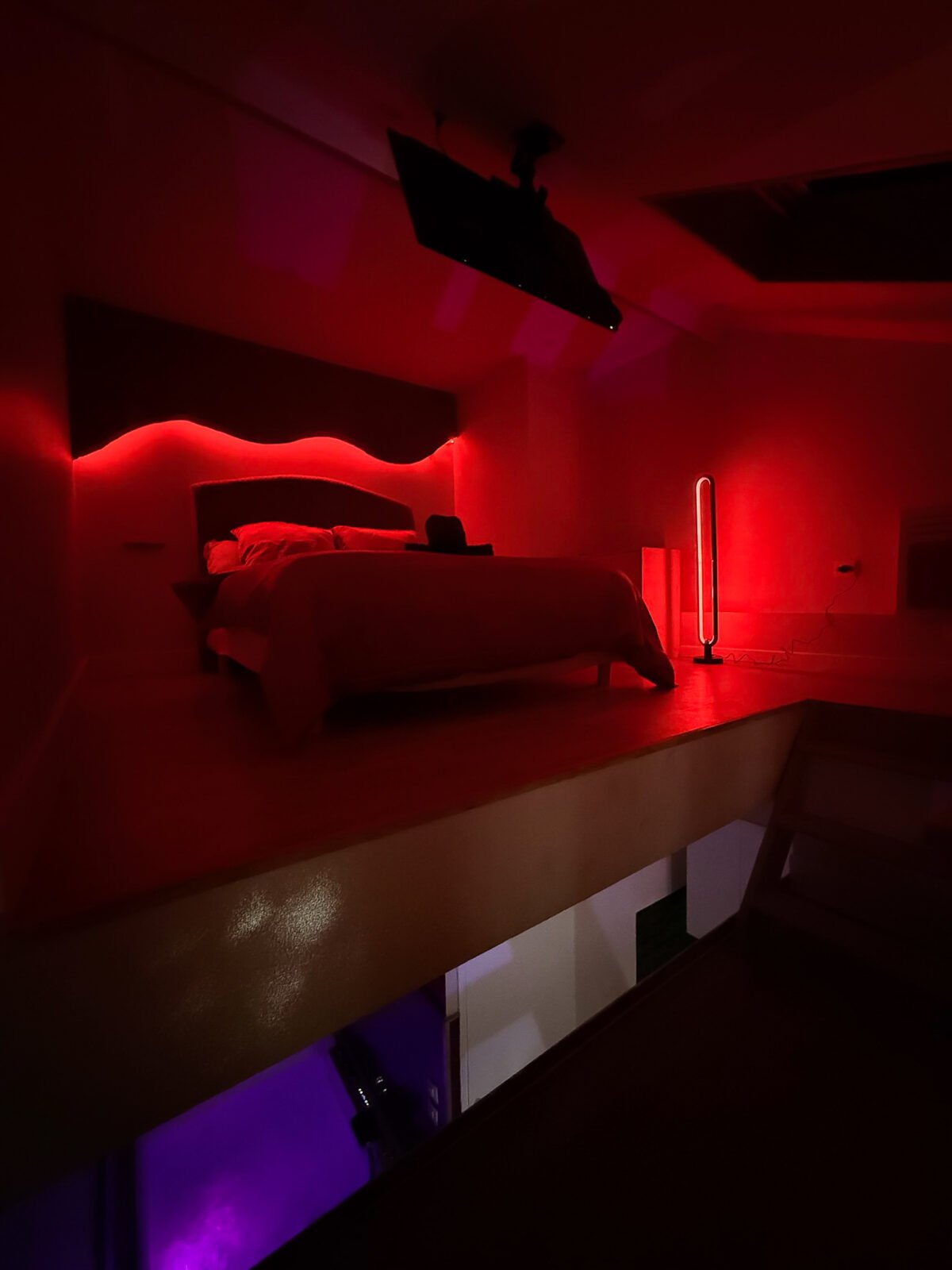 À l’étage, une chambre en mezzanine cosy vous attend avec literie confortable et ambiance intimiste.