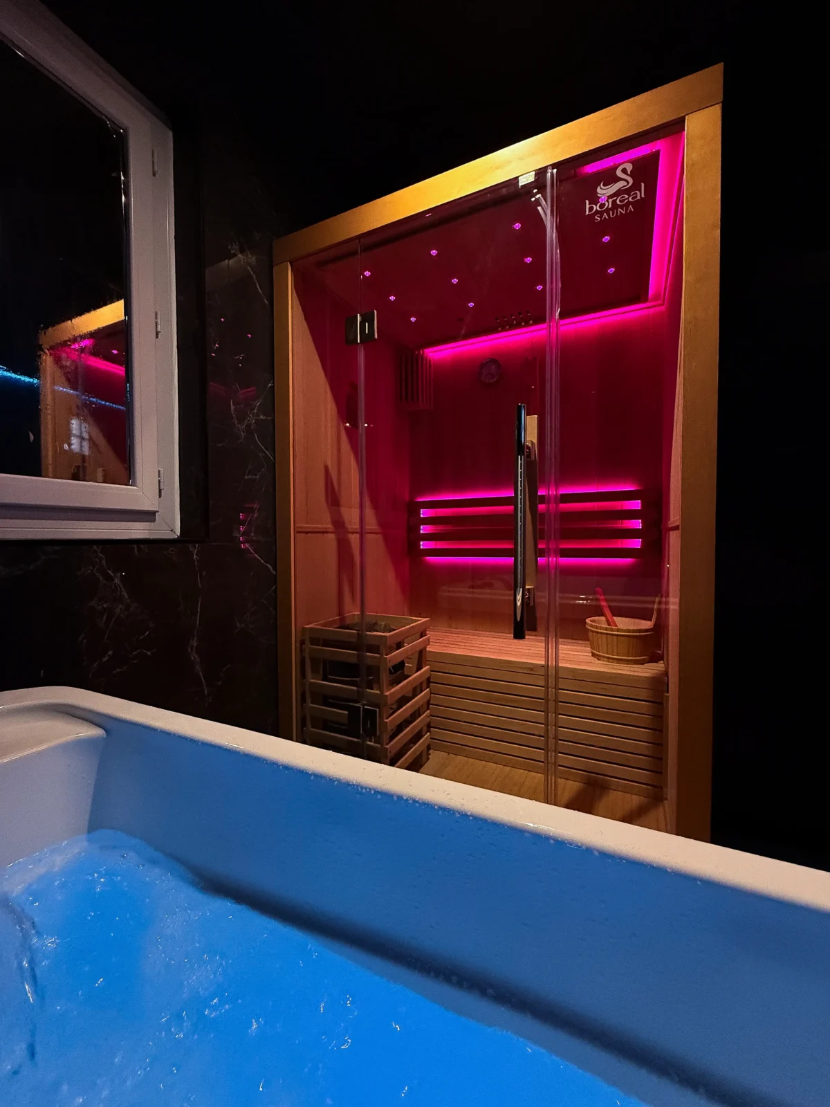 Un espace détente exclusif : Relaxez-vous dans votre jacuzzi privé ou profitez des bienfaits du sauna après une journée d’exploration ou de festivités.